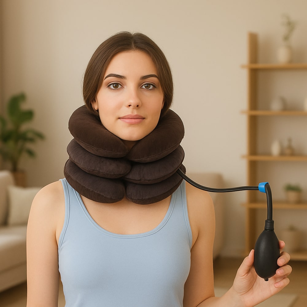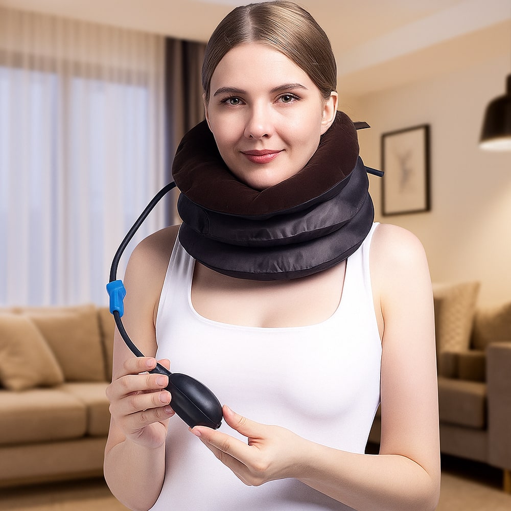Kada ga postavite oko vrata i polako napumpate, on podiže glavu i isteže vratne pršljenove, smanjujući cervikalni pritisak i bol.